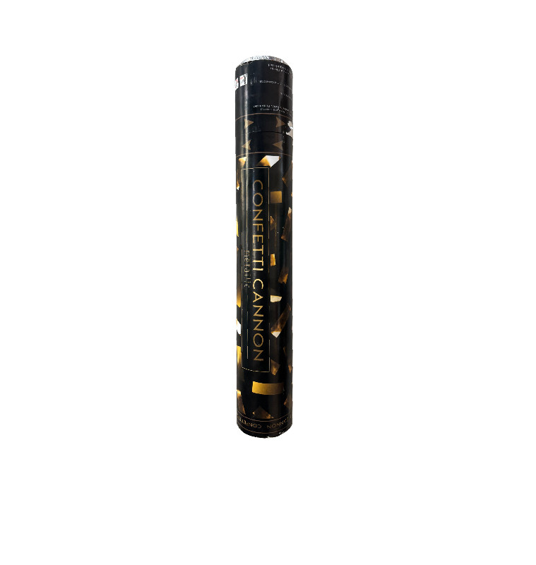 Canon à confettis métalliques noir et or, 30 cm