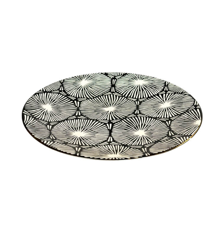 Assiette plate 27 cm Kushie noir et blanc