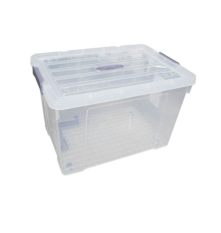 Boite de rangement transparente 50L en PVC avec roulettes