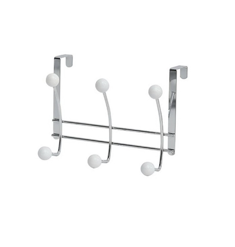 Patère murale 6 crochets céramique blanche et métal chromé