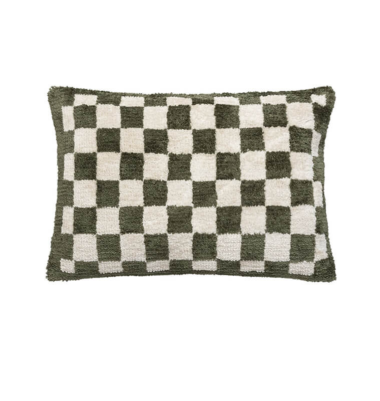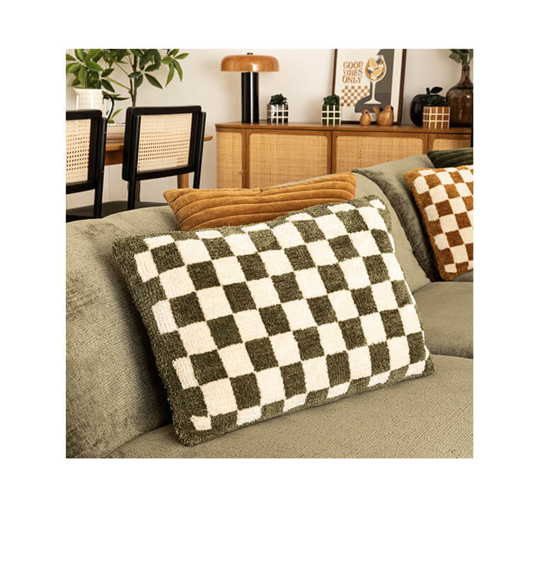 Coussin décoratif rectangulaire orné d’un motif damier graphique dans des tons contrastés noir, gris et blanc. Son design moderne et structuré apporte du rythme et du caractère à votre décoration intérieure. Idéal pour habiller un canapé, un fauteuil ou un lit, ce coussin s’intègre facilement dans un univers contemporain, minimaliste ou urbain. À la fois décoratif et confortable, il constitue un accessoire parfait pour créer une ambiance chic et tendance dans votre salon ou votre chambre