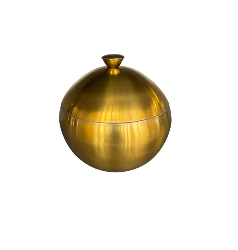 Une pièce de bar à part entière. Ce seau à glace en forme de sphère dorée brossée est bien plus qu'un simple accessoire fonctionnel, c'est un véritable objet de décoration qui sublime n'importe quel bar ou table de réception. Sa forme ronde parfaite et sa finition dorée satiné lui confèrent un luxe discret et intemporel très recherché. Le couvercle ajusté maintient la glace froide plus longtemps et complète la silhouette sphérique avec élégance. Un cadeau d'exception pour les amateurs de belles choses qui reçoivent avec soin et originalité.