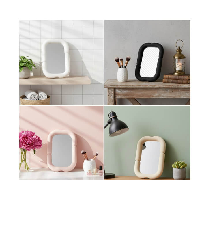 Miroir de format 30 × 20 cm au design ovale, pouvant être utilisé aussi bien fixé au mur que posé sur un meuble. Son cadre aux lignes douces apporte une touche moderne et élégante à votre décoration. Idéal pour une salle de bain, une chambre, une entrée ou une coiffeuse, il allie praticité et esthétique pour un usage quotidien. Compact et léger, il s’intègre facilement dans tous les styles d’intérieur.
