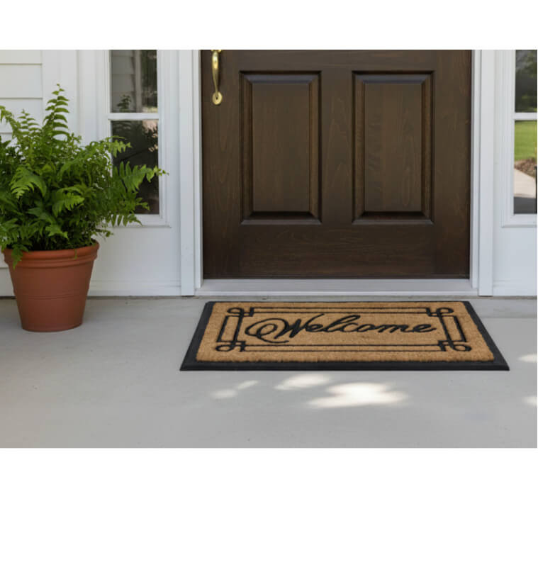 Apportez une touche d’accueil chaleureuse et pratique à votre entrée avec ce paillasson en fibres de coco naturel et base en caoutchouc antidérapant. Compact et efficace avec ses dimensions 45x75 cm, il retient la poussière et l’humidité tout en restant bien en place. Son inscription "Welcome" souligne son côté convivial, idéal pour souhaiter la bienvenue à vos invités