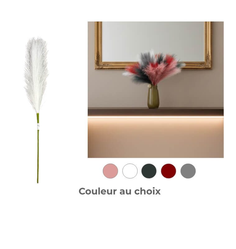 Petite par sa taille, grande par son impact décoratif ! Cette tige florale artificielle de 58 cm à texture fine et soyeuse s'inspire des herbes de la pampa et des roseaux naturels pour une décoration chic et épurée, accessible à tous. Son format compact en fait l'alliée idéale des petits vases, centres de table, étagères et compositions florales mixtes. Associez plusieurs coloris pour un rendu bohème et généreux, ou optez pour un seul ton pour un effet minimaliste et sophistiqué.