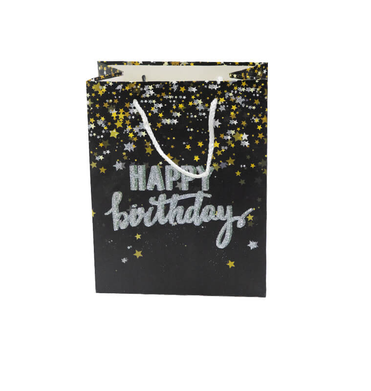 Ce sac cadeau “Happy Birthday” grand format, orné d’étoiles scintillantes dorées ou argentées, est idéal pour emballer vos plus belles attentions. Avec ses dimensions généreuses (32 x 26 x 12 cm)