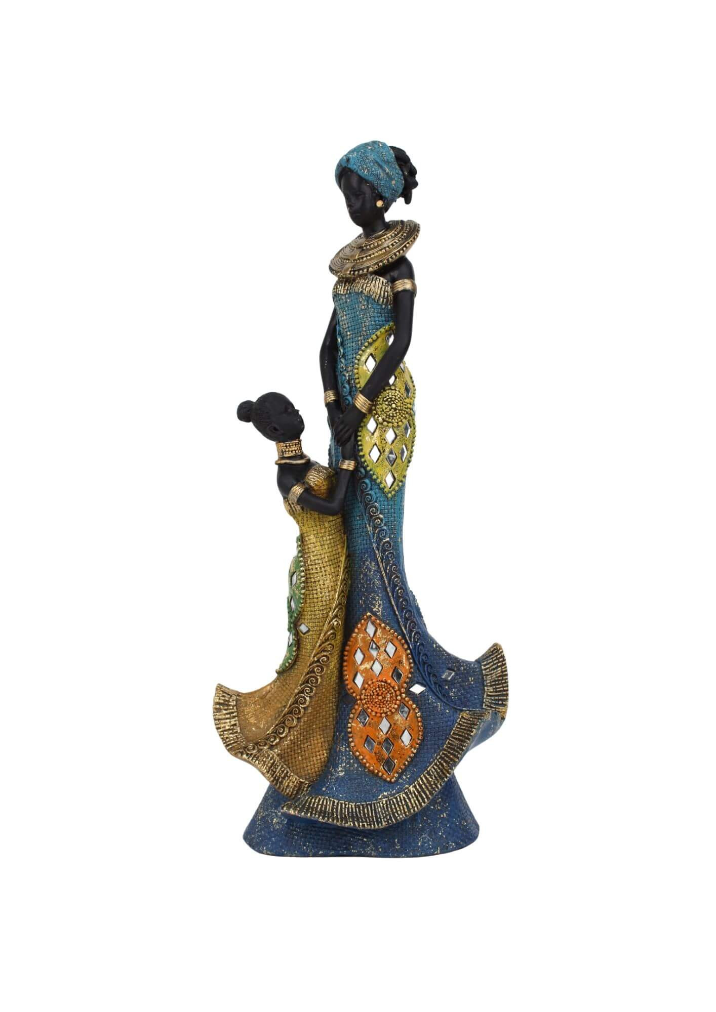 Statuette décorative représentant une femme africaine accompagnée d’une petite fille, symbole de transmission et de lien familial. D’une hauteur de 36 cm, elle est vêtue de tenues aux motifs colorés qui apportent chaleur et authenticité à la décoration. Cette pièce élégante trouve facilement sa place dans un salon, une chambre ou une entrée, pour une ambiance inspirée de l’art africain.