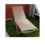 Ce transat taupe en polypropylène, mesure 190x70x88cm. Il est disponible en d'autres coloris. Le polypropylène est un plastique très résistant, léger, et souvent utilisé pour le mobilier d’extérieur en raison de sa bonne résistance aux UV, à l’humidité et aux variations de température.