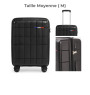Alliant robustesse et style, cette valise trolley rigide taille moyenne est le choix parfait pour les voyageurs qui exigent fiabilité et performance. Sa coque noire mate quadrillée résiste aux chocs et aux rayures, tandis que ses 4 roues pivotantes à 360° offrent une maniabilité sans effort, même dans les espaces bondés. elle a passé avec succès un protocole de tests qualité international en 6 étapes : chocs, chutes, escaliers, poignée, roulage et températures extrêmes. Une garantie concrète de durabilité. Taille médium, idéale pour les séjours de 5 à 7 jours |  Coque rigide noire, résistante et légère | Design quadrillé moderne et premium